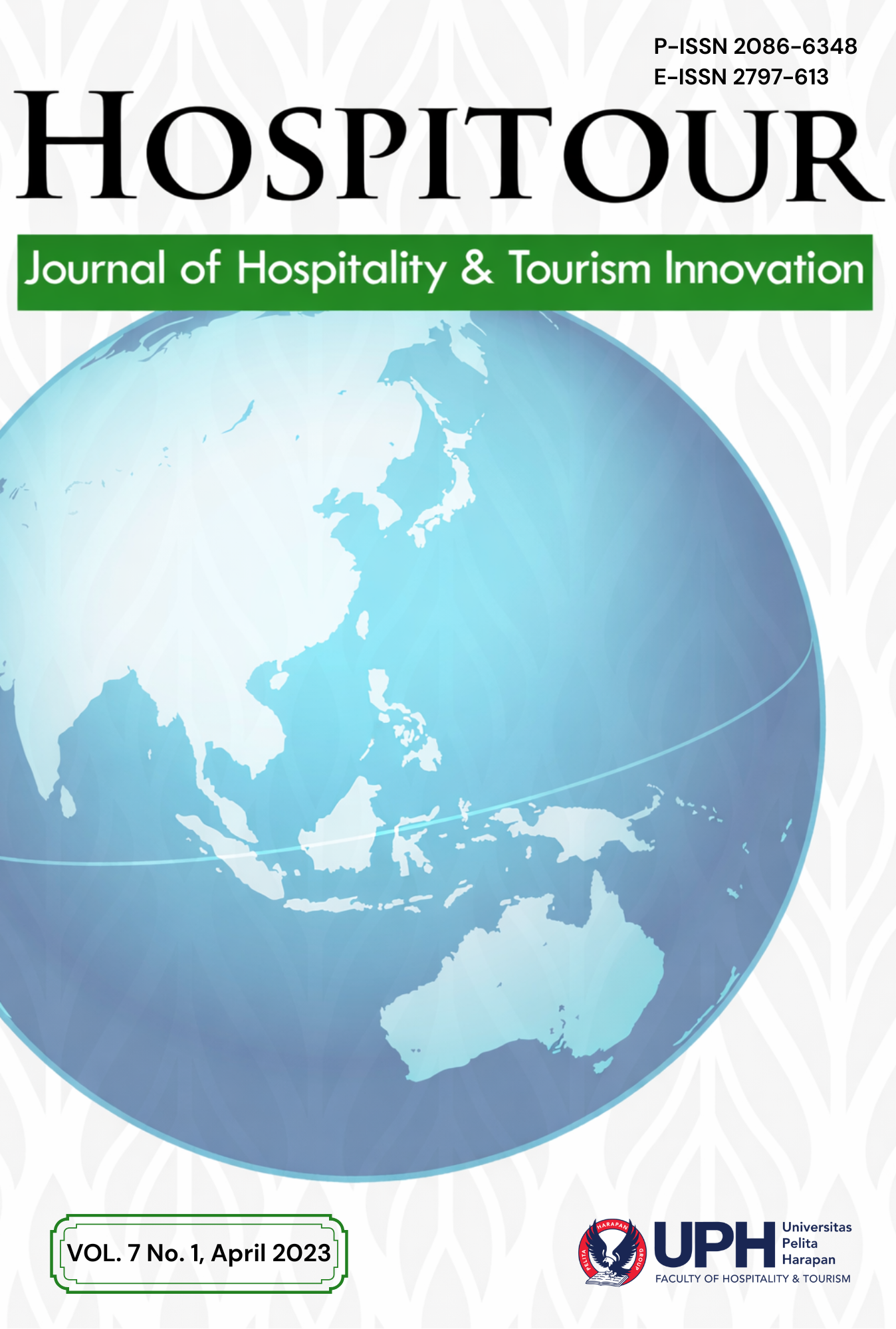 Hospitour: Journal of Hospitality & Tourism Innovation, a scientific journal of Universitas Pelita Harapan's School of Hosptiality & Tourism, began publishing online in 2021. It is published twice a year, in April and October. The journal's focus is on Sustainable Hospitality and Tourism Development and, more specifically, on Destination Tourism, the Hospitality Industry, Travel, MICE and Event Management, Service Management, Tourism Media, Hospitality & Tourism Education, and related aspects of Tourism.